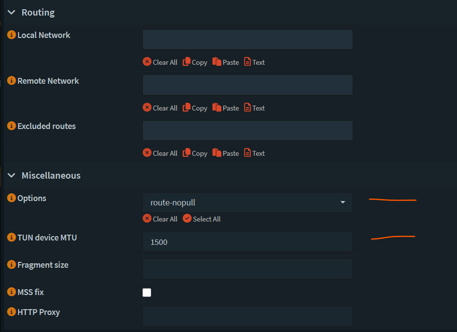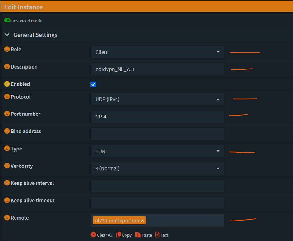 - Add an OpenVPN instance (VPN -> OpenVPN -> Instances -> Instances)