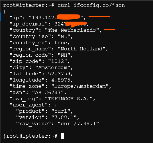 - Verify that the client traffic is routed over the VPN tunnel by going to a browser and visiting a site like whatismyipaddress.com or from the terminal.